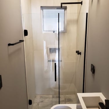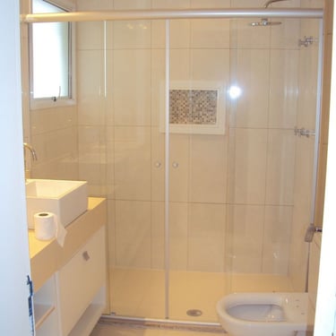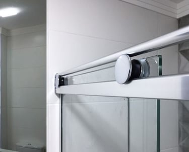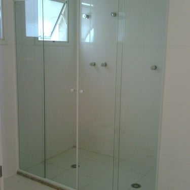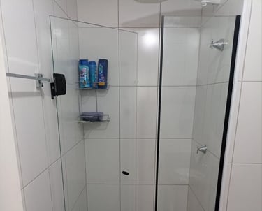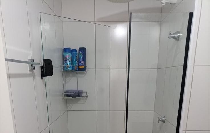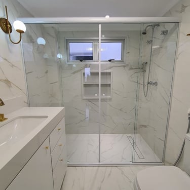 O box de correr de 4 folhas proporciona uma abertura ampla e flexível, facilitando o acesso ao espaço de banho.